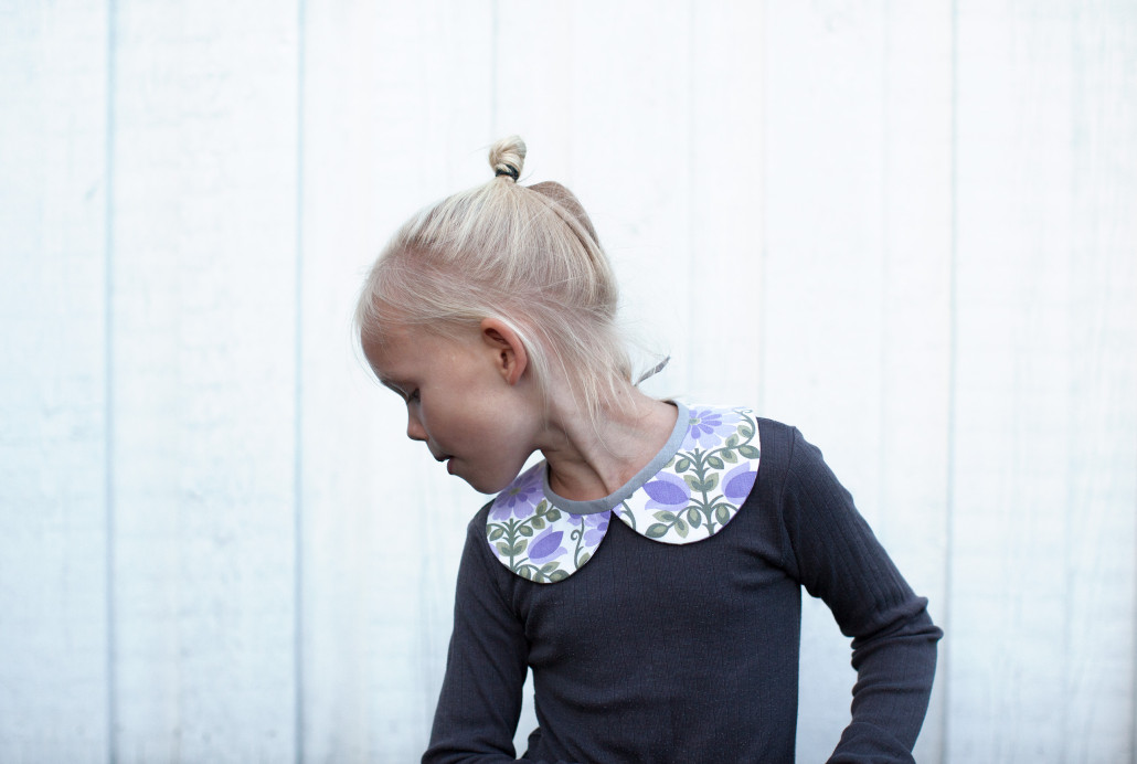 Vi udvælger de flotteste retrostoffer og syr det om til kraver, hvorfor der kun er begrænset antal i det enkelte design. Den enkelte krave kan variere i størrelse og form.